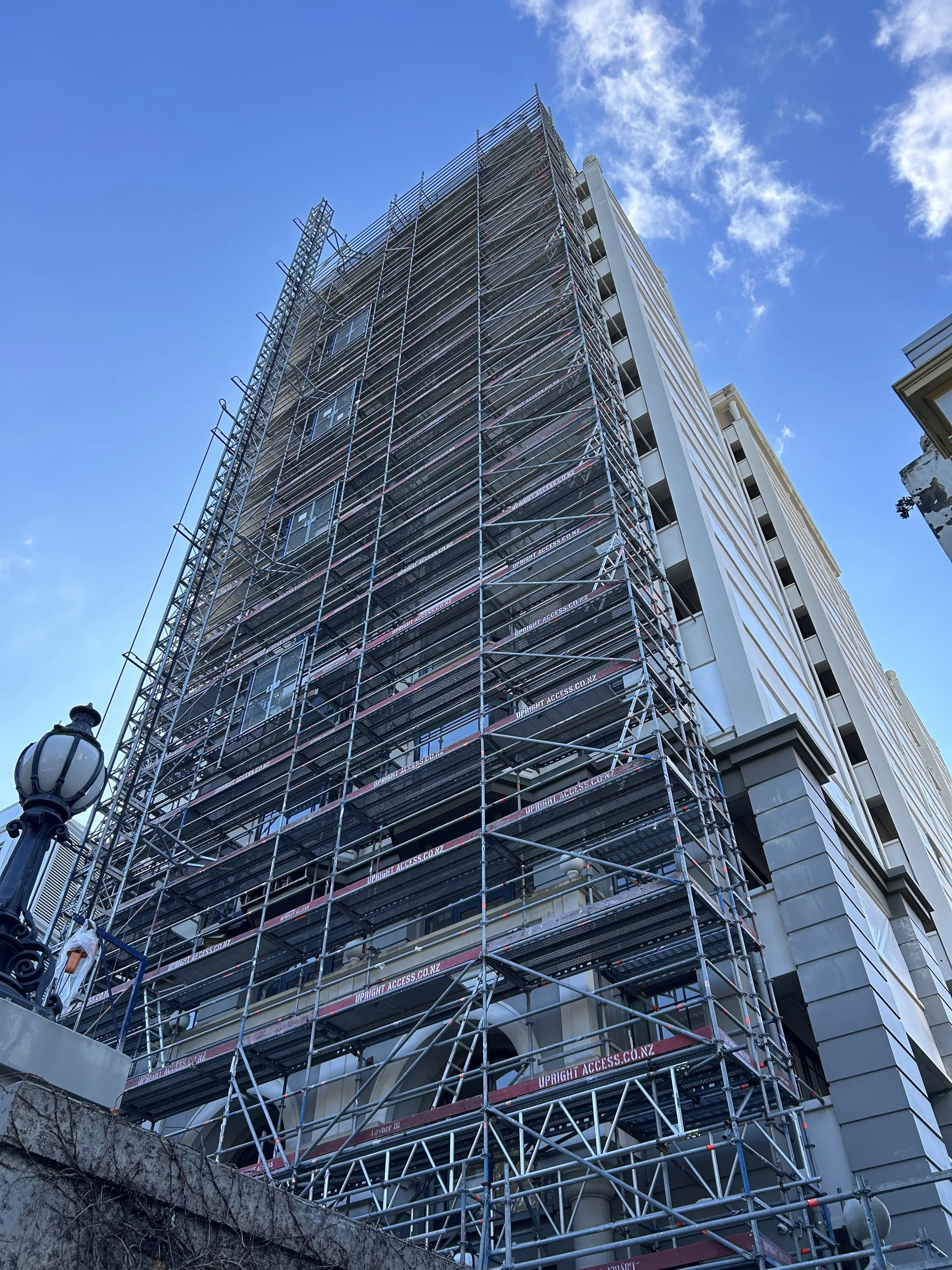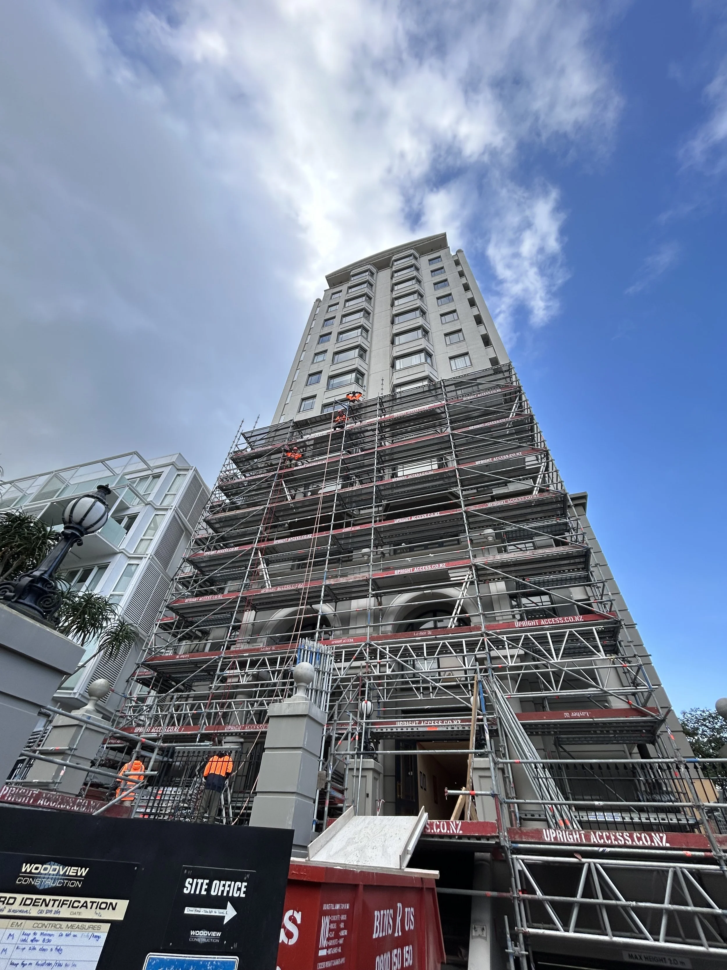 The connaught apartments in the Auckland CBD was a massive project we worked on for over 2 years. At the tallest point it was 50 meters. Where there is no scaffold we installed swing stages for the works that needed to happen. This made the overall cost for our client a lot cheaper.